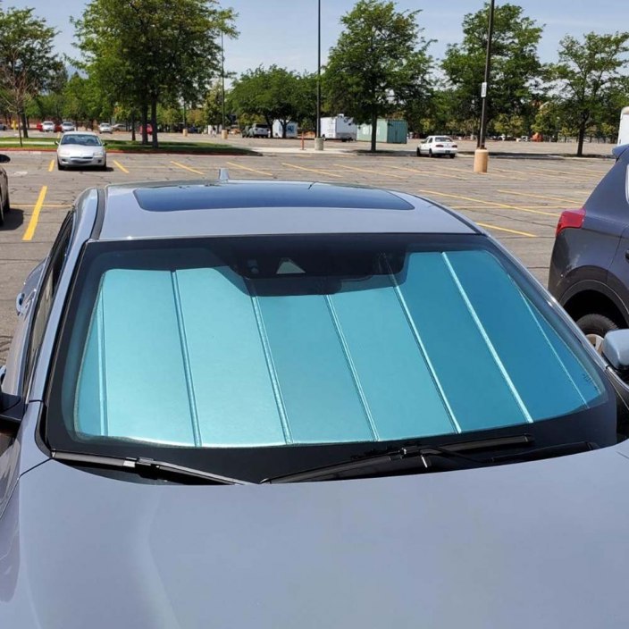 - Titanyum gümüş renkli kumaş ile donatılmış olan bu ürün, mükemmel ısı yalıtımı sağlayarak aracınızı sıcak günlerde daha serin tutar ve iç yüzeylerin solması, çatlaması ve eğrilmesi gibi UV kaynaklı hasarları önler.
